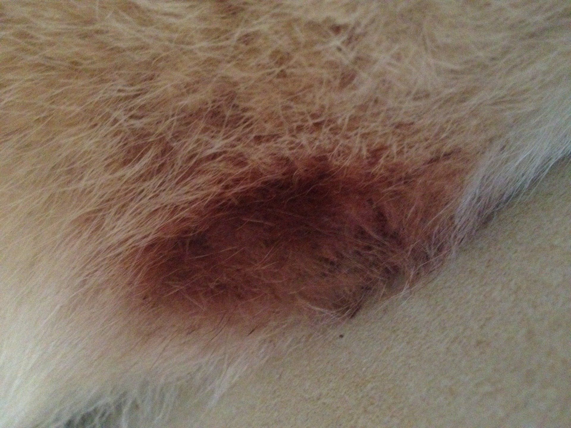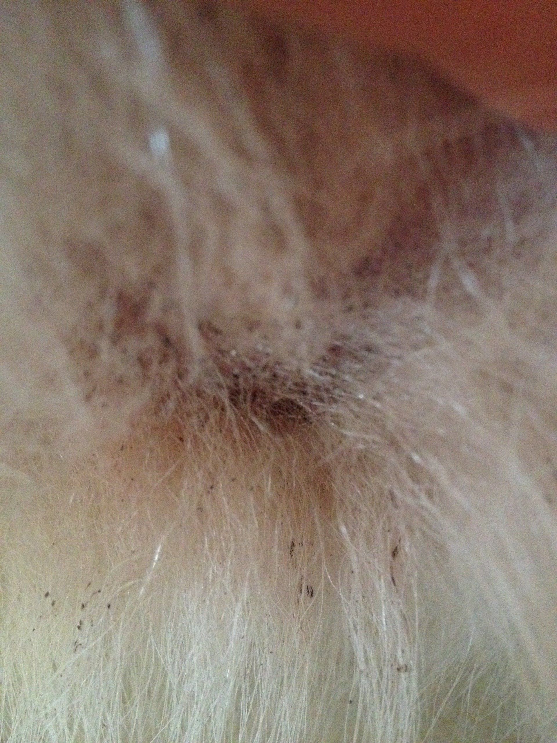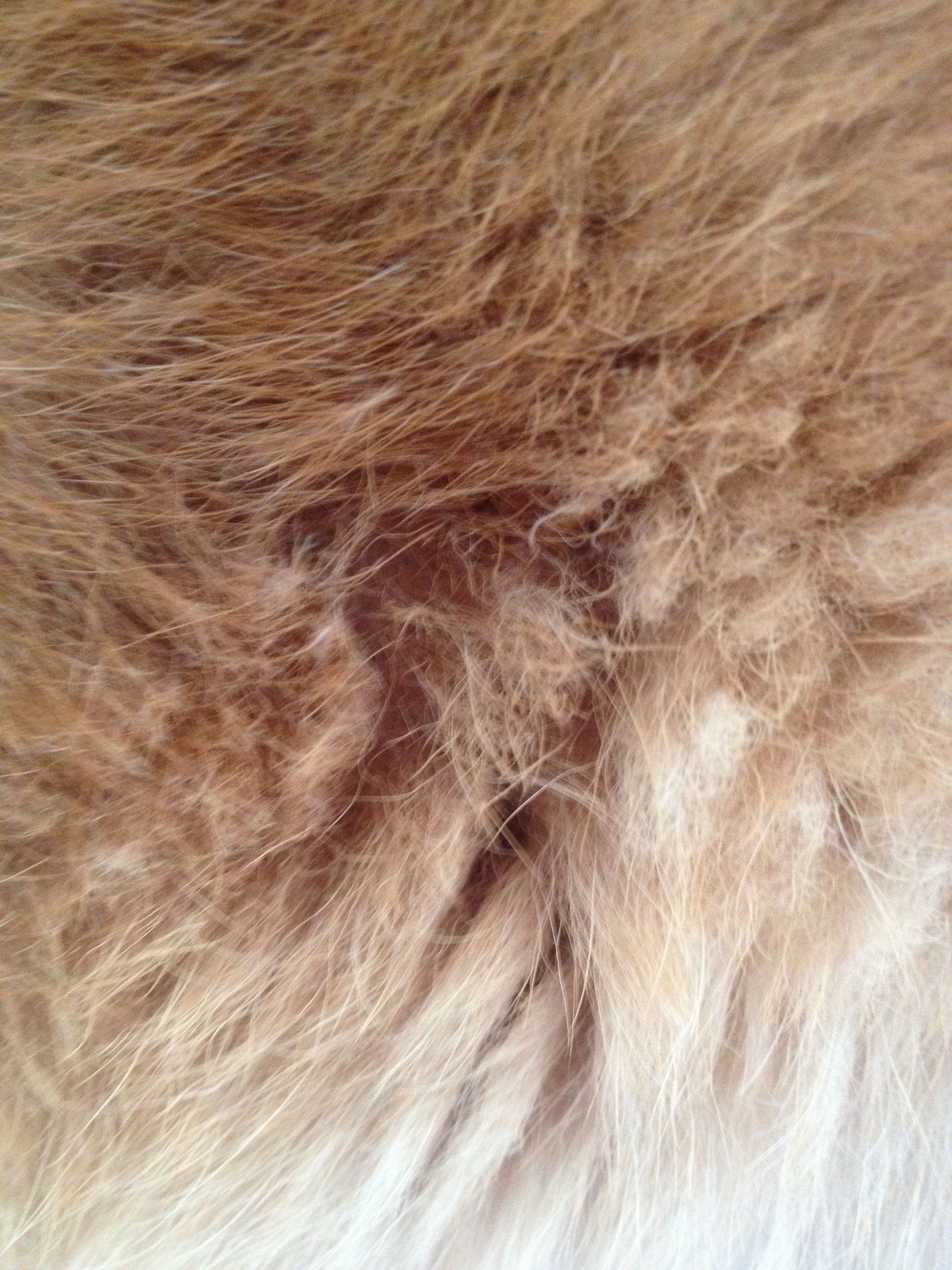 gerötete Haut mit rot-braunen Ablagerungen im Fell